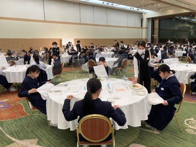 軽井沢プリンスホテルに到着し、今テーブルマナーを学んでいます。
