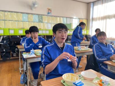 感謝の気持ちでいただきます【今日の給食】 2023年11月22日 13時07分 くまモンからみかんが届きました!!(宇城みかん)麦ご飯 牛乳 りっちゃんサラダ ポークカレー ヨーグルト 最高の笑顔でした! ありがとう くまモン!! いいね 7