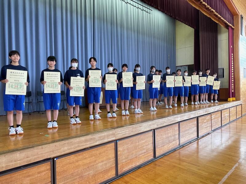最後に、夏休み期間にあった県大会、東北大会、全国大会出場の生徒の表彰披露です。
