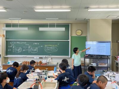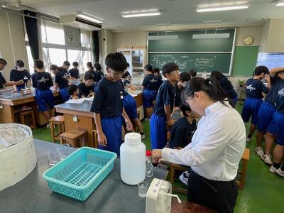 1年生の理科の授業に入ってもらいました。火を使ったり、慎重に扱わなければならない薬品を使ったりするものでしたので、大変助かりました。