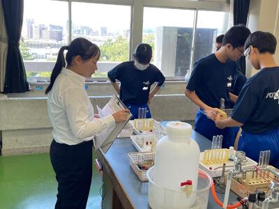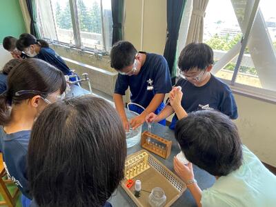 そのボランティアという立場とは別に、「未来の理科教員を育成する」目的で、2年生の学生が短期間の理科実習助手の経験をしに四中にきています。今日はその一日目でした(今日紹介する学生は6日まで)。