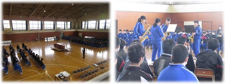 12月23日(月)の1~2校時に全校生で卒業式の隊形を作ってみました。今年度より卒業式の隊形を対面式にして、卒業生と保護者の距離を縮めたいと考えたからです。本番まで試行錯誤しながら、仕上げていきたいと考えています。
