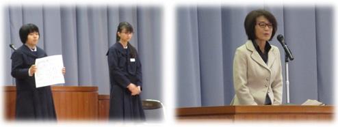 各学年の新年の抱負 2020年1月8日 12時10分 始業式後に全校集会が行われました。各学年の代表による新年の抱負が発表されました。 表彰披露と3学期からお世話になる生徒支援教員の渡辺あや子先生の紹介がありました。