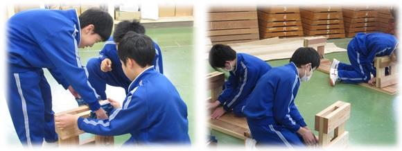 東京オリンピック・パラリンピックに向けて 2020年1月15日 15時30分 1月15日(水)の1校時に、東京オリンピック・パラリンピックの関連施設で使用する木製ベンチを製作しました。福島県産のスギ材を使ったものです。全部で3脚を製作しました。