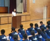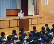 福島警察署の方をお招きして、インターネットに潜む危険と、自転車走行のマナーについて、具体的に説明していただきました。危険を避け、安全な生活を送るために、全校生徒は話をしっかりと聞いていました。