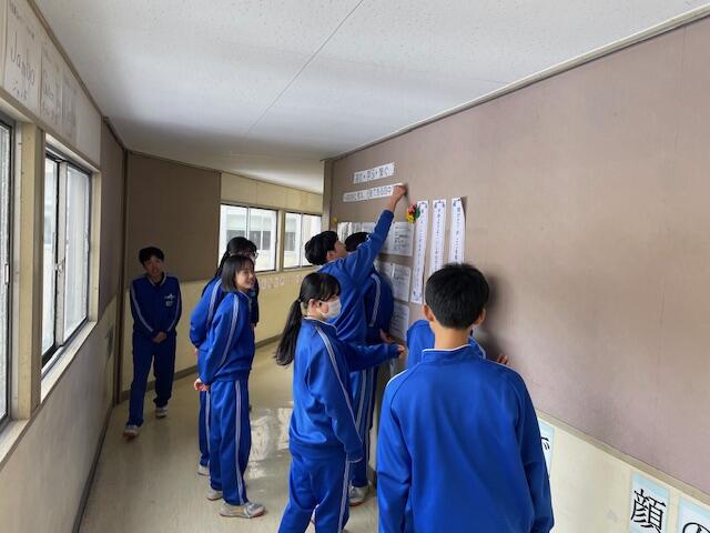 中央廊下掲示物の張替えを、生徒会本部役員を中心に行いました。