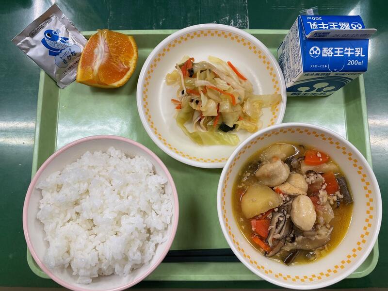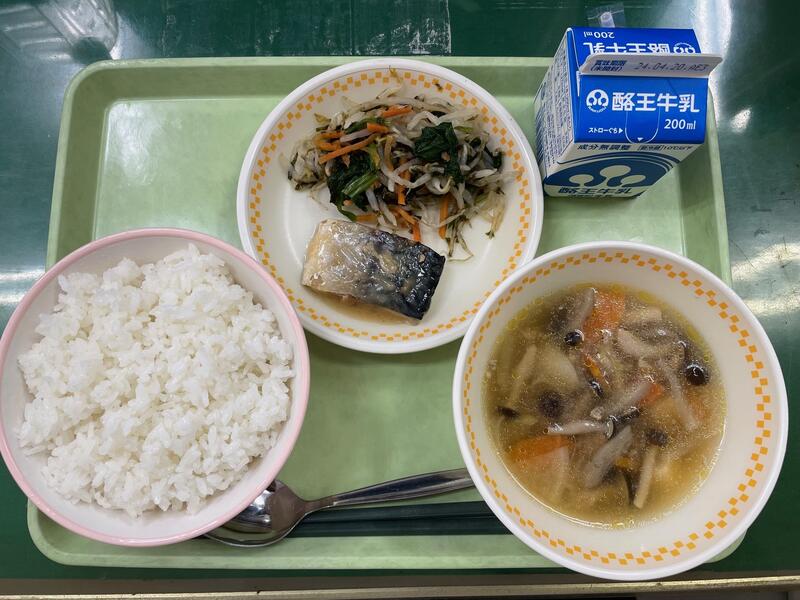 カルシュウムご飯 牛乳 さばの味噌煮 磯和え けんちん汁