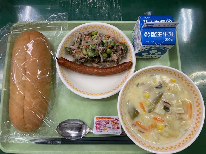 切り目入りコッペパン 牛乳 フランクフルト ケチャップ&マスタード ツナごぼうサラダ 春野菜のクリームスープ