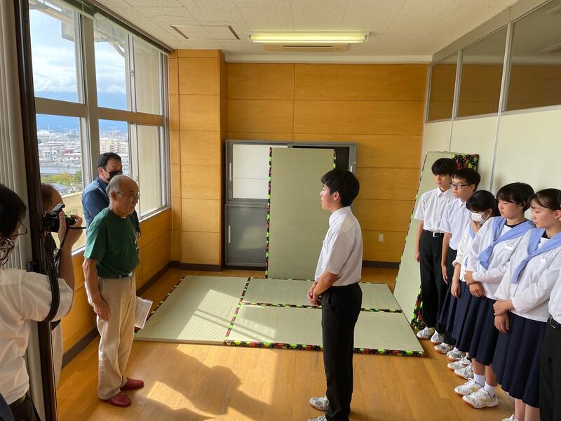 福島県畳工業組合福島支部では、平成13年より市内各小、中学校に継続して畳を寄贈してきたそうです。そして今年は福島第四中学校への寄贈でした。