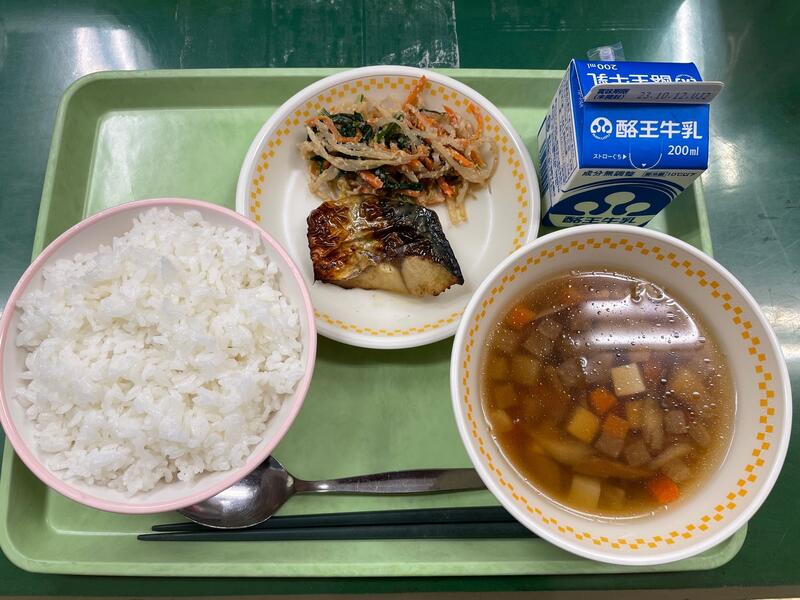 ご飯 牛乳 さばのカレー焼き 胡麻和え ざくざく汁