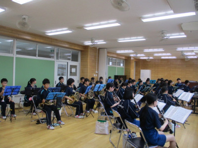2025年12月13日 19時20分ふくしん夢の音楽堂でアンサンブルコンテスト県北支部大会が行われました。本校からは金管・木管・打楽器の3グループが出場しました。全校集会で演奏を披露した後も、熱心に練習に取り組んできました。緊張もあったと思いますが、それぞれ見事に演奏することができました。激励に来てくれた3年生の皆さん、遅くまでご協力をいただきました保護者の皆様ありがとうございました。