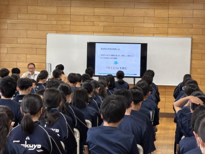 2025年12月11日 18時50分加藤優子先生を講師としてお招きし、1年生の毛筆書写授業を行いました。「書き初め」のポイントや注意点、筆の使い方などを実演しながら教えていただきました。これまで以上に上手にかけたと話している生徒が多く、意識して取り組むことの大切さも実感した生徒が多かったようです。加藤先生の授業は毎年12月に行っており、今年で25年目になります。長年にわたり岳陽中学校を支援していただいてることに感謝をしたいと思います。