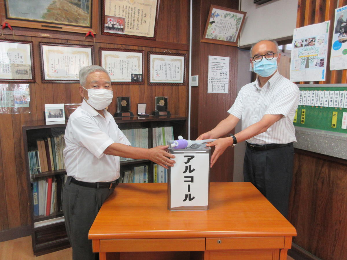 2020年6月12日 11時28分三河台地区青少年健全育成推進会 会長 鈴木正勝 様より、アルコール一斗缶1つとポンプをいただきました。大切に活用させていただきます。