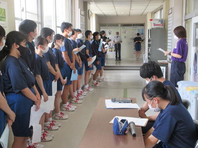 生徒指導主事の先生からは、夏休み(8/8~8/21)の過ごし方についてです。計画的に過ごせるようにすること。3年生は、進路を見据えた学習を進めること、1,2年生は2学期の準備をすることでした。