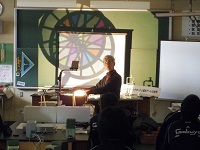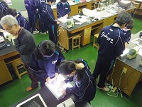 2016年2月1日 12時43分 1月30日(土)に本校理科室において、吉井田学習センターの出前講座、岳陽中学校科学教室が開催されました。講師として、宮城教育大学名誉教授千葉芳明先生、アシスタントとして東北大学名誉教授中島美樹子先生が、お忙しい中を仙台からお出でいただき、理科の授業ではなかなかできない光の実験をしていただきました。生徒たちは、光のおもしろい現象に感動し、熱心に話を聞いたり、観察・実験を行ったりし、科学に対する興味・関心が一層高まりました。