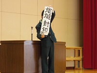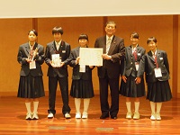 本校からは、1年女子生徒が、全国表彰特別賞となり、全国選考委員長の直木賞作家である安部龍太郎さんから、直接表彰状をいただき、たいへん感動していました。