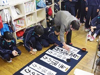 2015年12月21日 11時00分 第1学年国語科では、12月15・16日(火・水)の両日、特別非常勤講師の加藤優子先生を招聘し、習字の指導をしていただきました。生徒は日ごろ筆を持つ機会がほとんどないため、始めは戸惑っていましたが、先生から手ほどきを受けて書き慣れるにしたがい、生徒それぞれに味のある作品に仕上げていました。生徒の作品は、全員書きぞめ展に出品する予定です。