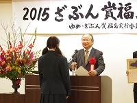2016年1月13日 13時34分 1月9日(土)にAOZ(アオウゼ)において、2015年度ざぶん賞福島地区表彰式が開催されました。さぶん賞は、全国の小中学生が、生命の源「水」を通じて自然や命の大切さを考え、いろいろな想いを詩や作文などの作品にしたものを表彰します。