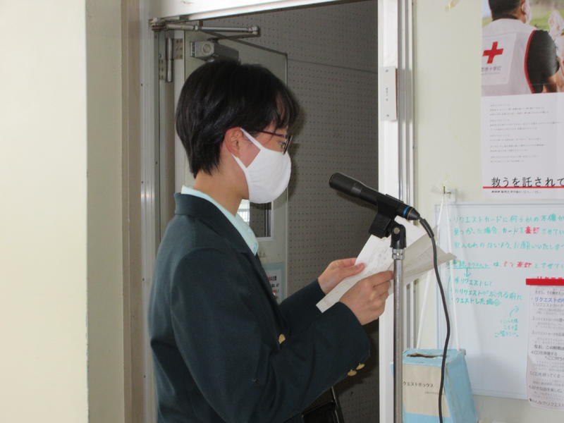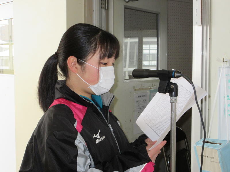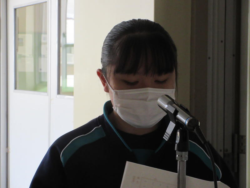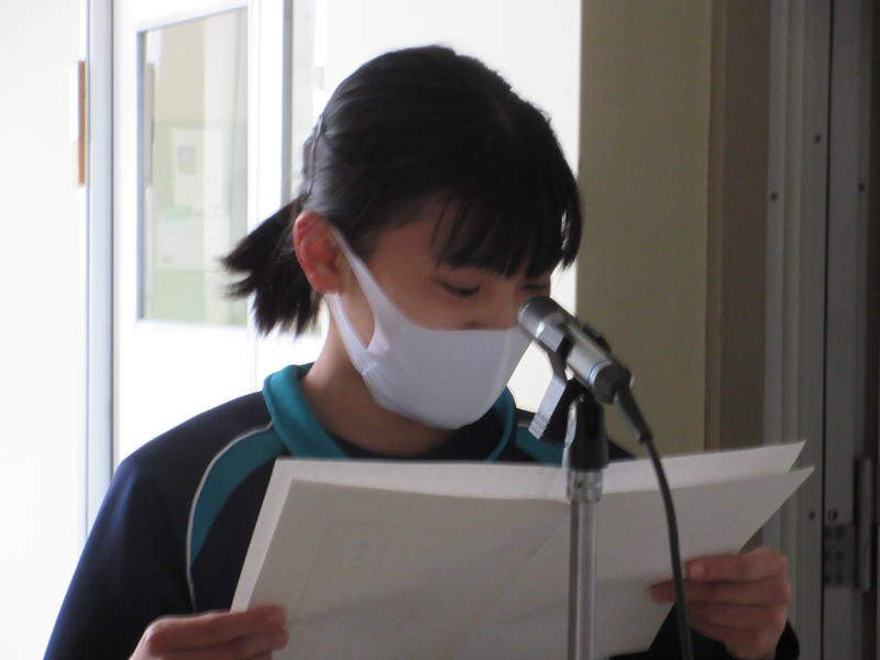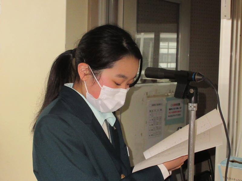 23日の学校臨時休業を受けて、22日に一日早い終業式を放送にて行いました。校長先生からは、「未来は誰にも分からない。だからこそ、どのような場合でも、希望を失わず、状況に合わせて、しなやかに、そしてしたたかに生きていく力を身に付けてほしい」とお話がありました。また、各学年の生徒代表が2学期の反省を発表しました。