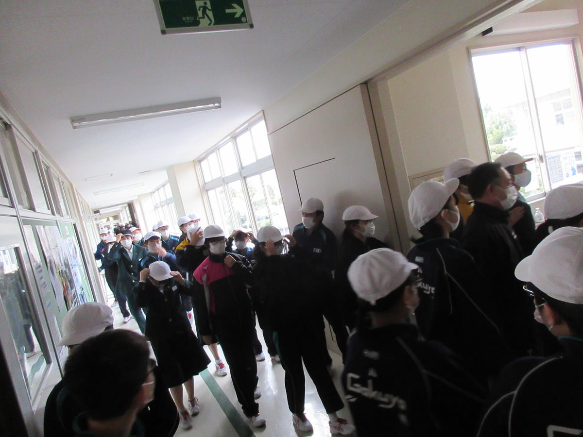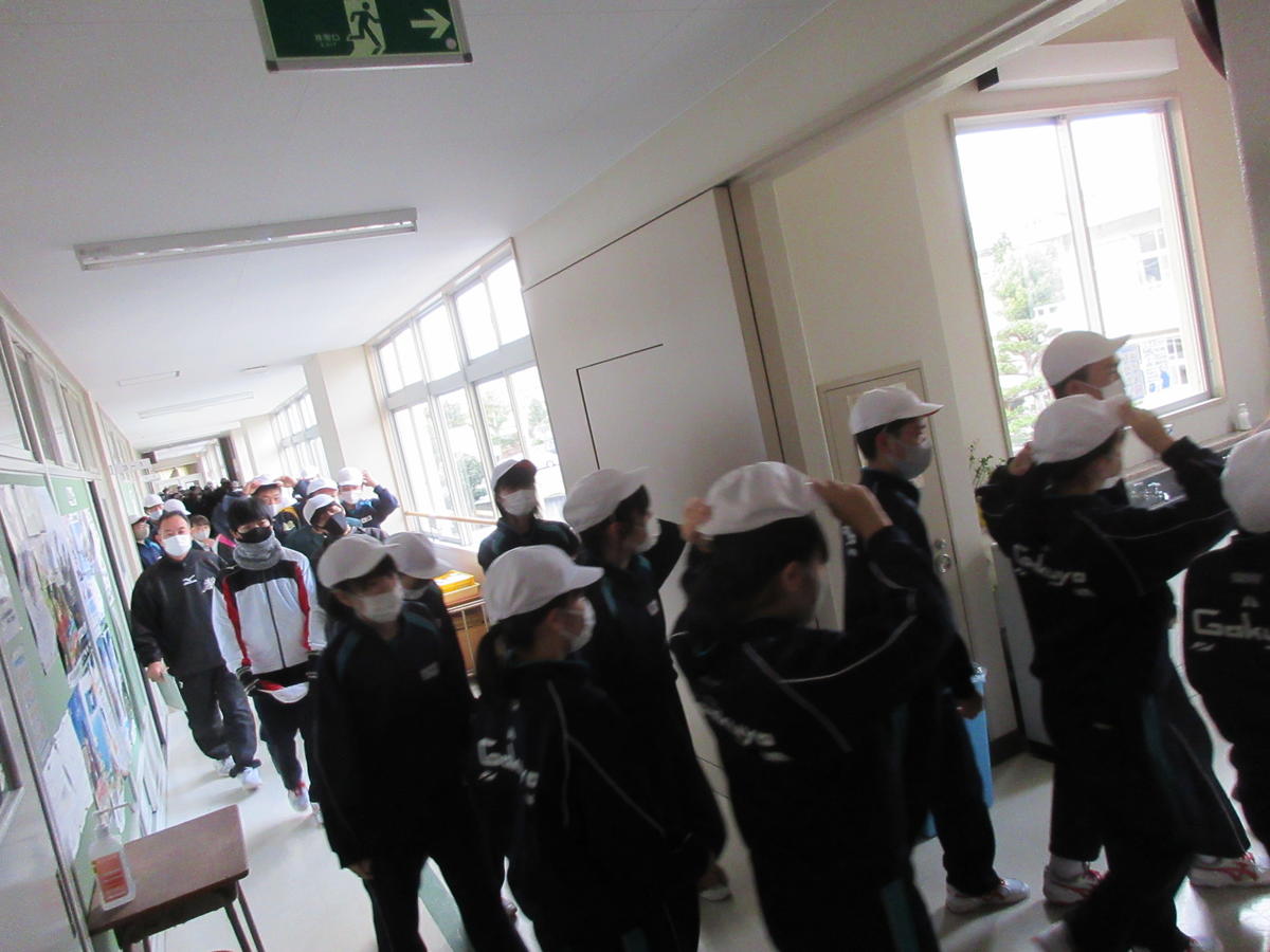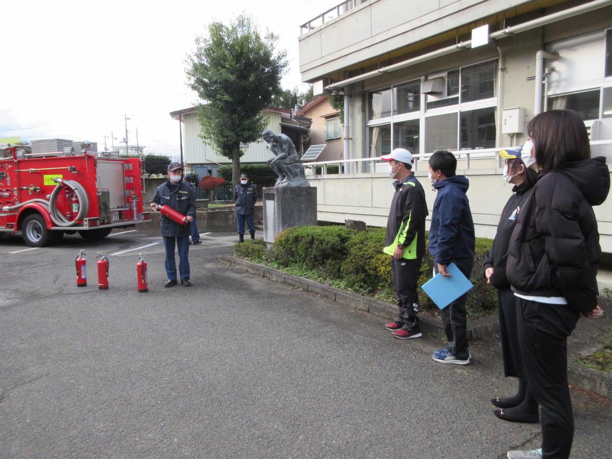 本日の6校時目に福島消防署の方々に講師を依頼して、避難訓練を実施しました。今回は、第一理科室からの出火を想定した避難訓練としました。教職員の通報訓練や水消火器体験、確実な生徒の誘導を中心に訓練を行いました。