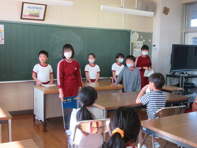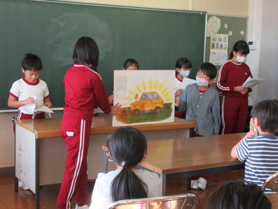 11月12日のふれあいタイムでは、図書・放送委員会が大型絵本の読み聞かせを行いました。
