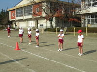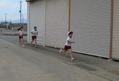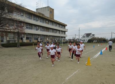 校庭と学校の周りを、低学年は900m、中学年が1100m、高学年は1600m走ります。