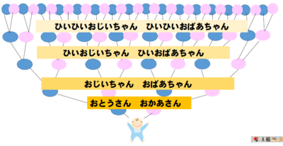 ひいひいおじいちゃんと、ひいひいおばあちゃんまでで62人から、命のバトンが渡されてきています。