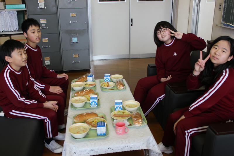 今年度も6年生の強い希望により、3月2日に校長室で給食を食べました