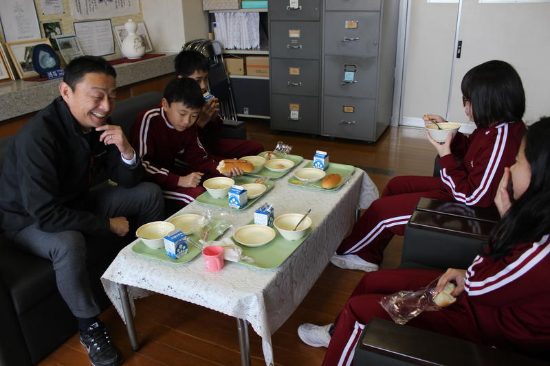普段のランチルームでの給食では、6年生と校長先生の席が離れているため、