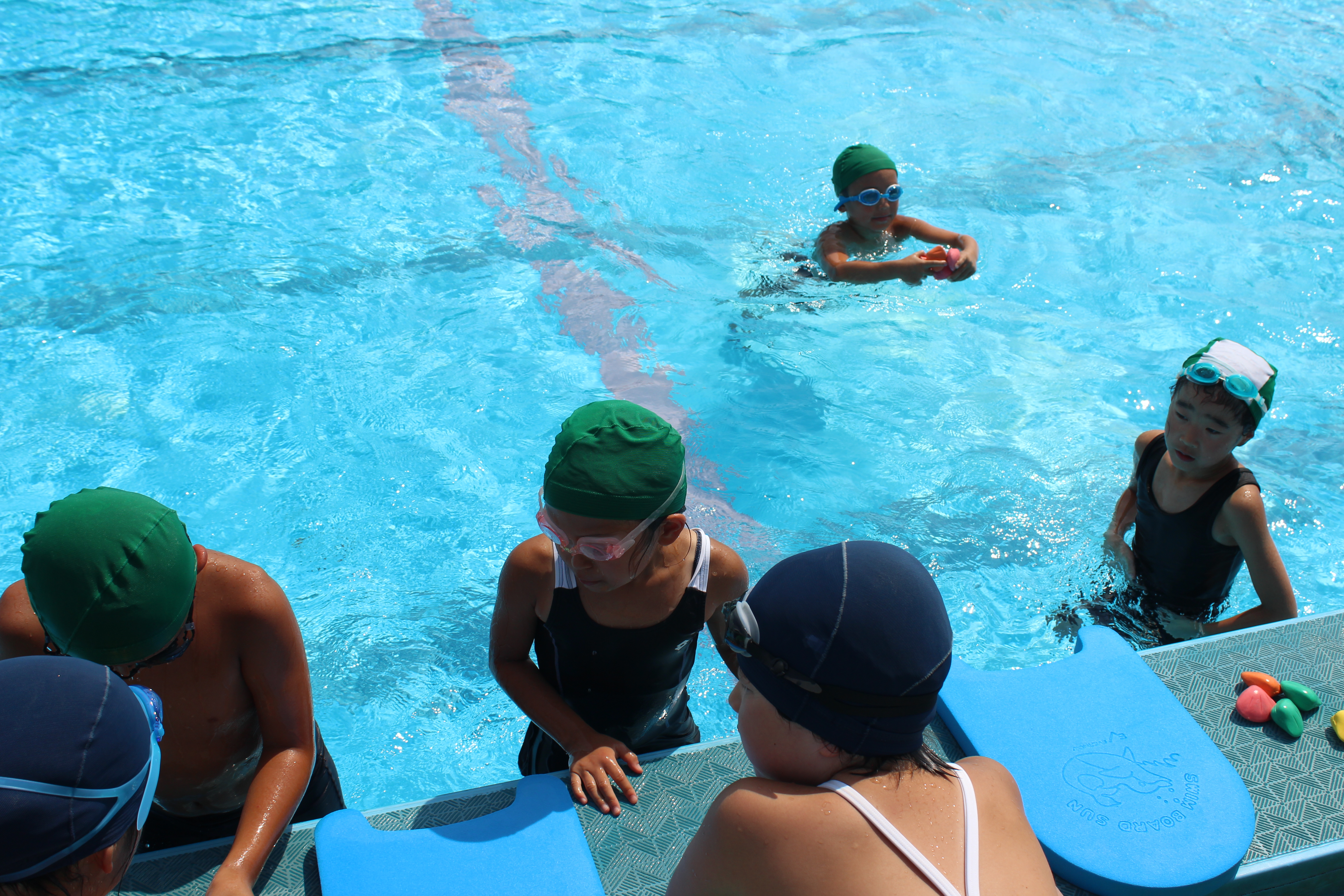 かなり気温が高く日差しも強い中、熱中症になることもなく子どもたちは元気いっぱいに泳いでいました。