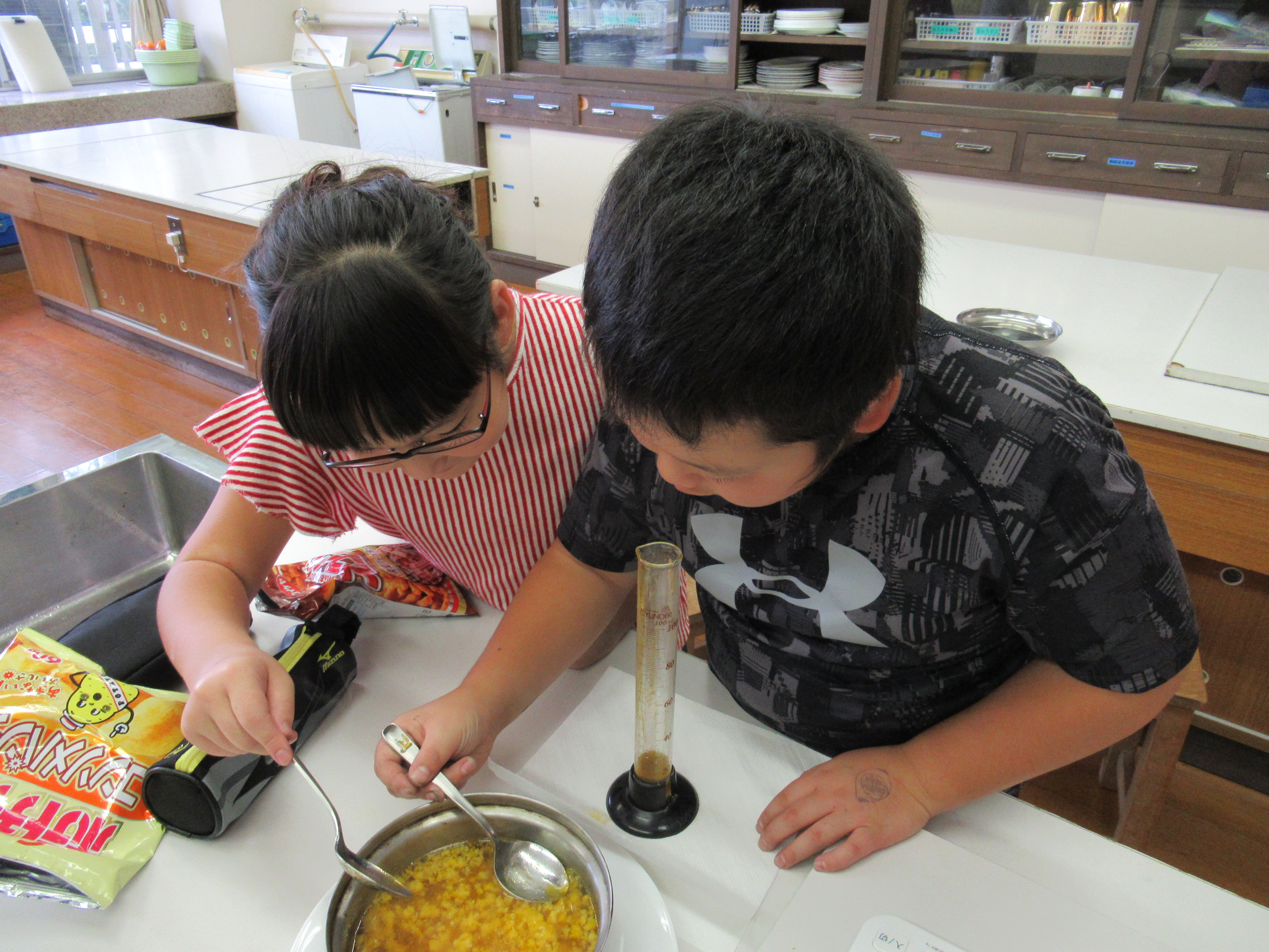 手が止まらなくなってしまいがちなスナック菓子ですが、実際に入っている油を見て、子どもたちも衝撃を受けたようでした。