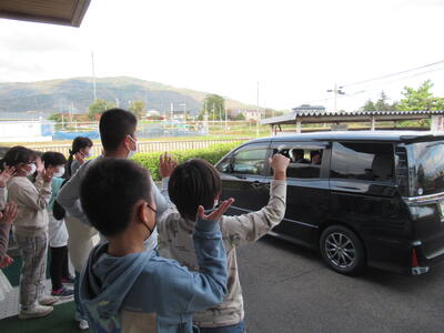 ウイリアム先生がお帰りになる前には、「なかよし東湯野」の歌を全校生でプレゼントしました。