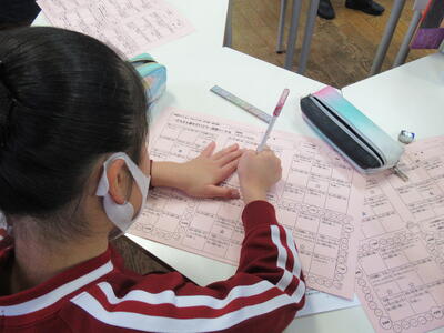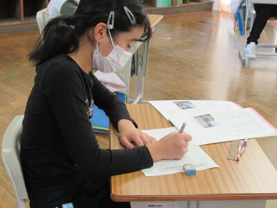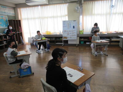 3・4年教室では、授業の終わりの挨拶後に「ちょっと待ってくださ~い!」の声。