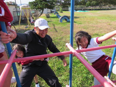 また、休み時間は校庭で、鉄棒、鬼ごっこ、野球など、いろいろな遊びに混ざっていただき、子どもたちは、いつも以上に楽しい休み時間を過ごすことができました。