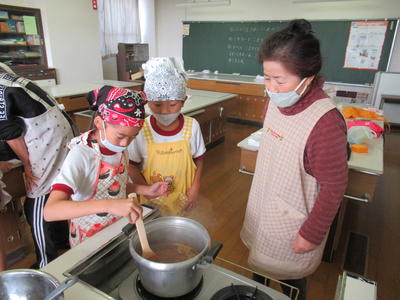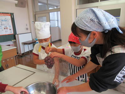 2020年11月6日 17時15分1・2・3・4年生が、ブドウジャムを作りました。