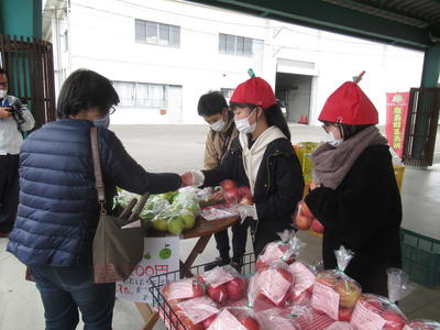 2020年12月3日 15時15分6年生が、収穫したリンゴ(サンフジと王林)を、ここら矢野目店で販売させていただきました。