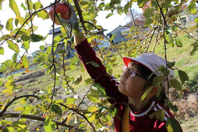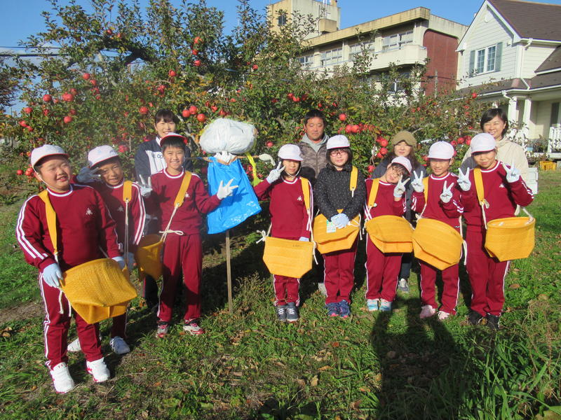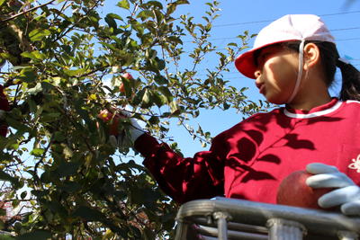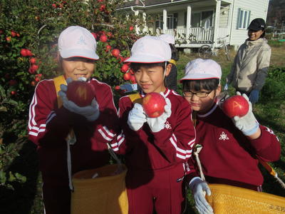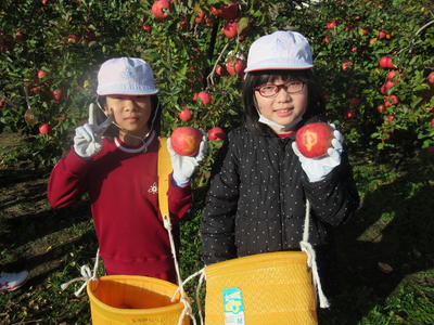 4・5年生のりんご栽培学習で、王林とふじを栽培しています。