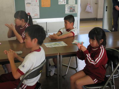 28日、昼休みのふれあいタイムに全校手洗い教室を行いました。