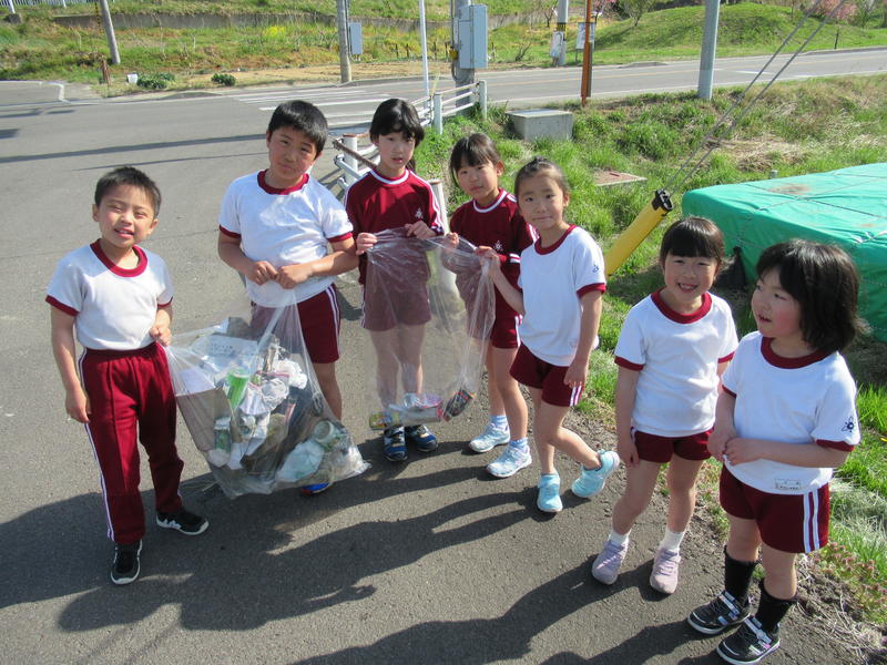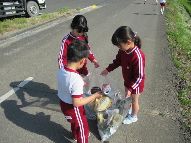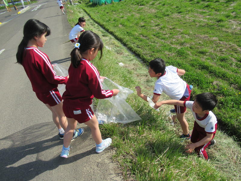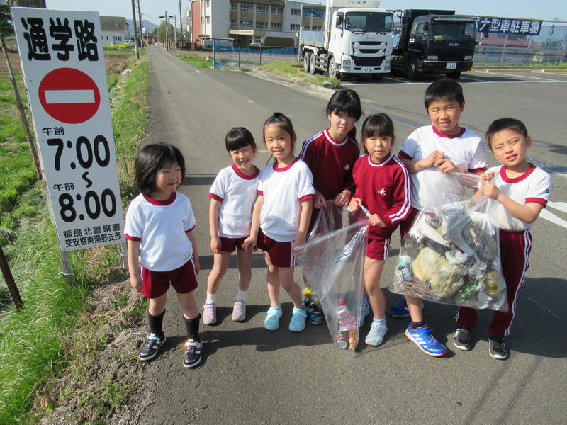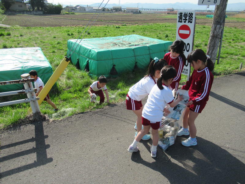 先日、早めに登校した子どもたちが、道路脇のゴミ拾いをしてくれました。