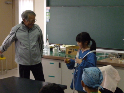 理科の授業のお手伝いをしてくださるサポートティーチャー川上先生が、楽しい実験を見せてくださいました。