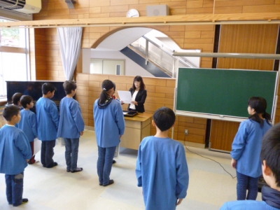朝の会で、県児童作文コンクールで特選になった児童、信夫の里健康マラソンに参加し入賞した児童に、賞状を伝達しました。