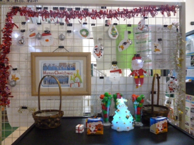 12月になり、玄関にクリスマスの飾りが登場しました。
