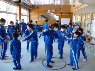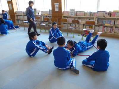 2016年3月15日 12時18分 今日は1・2年生の企画によるゲーム集会をしました。ハートサポート相談員の齋藤先生にも手伝っていただきました。