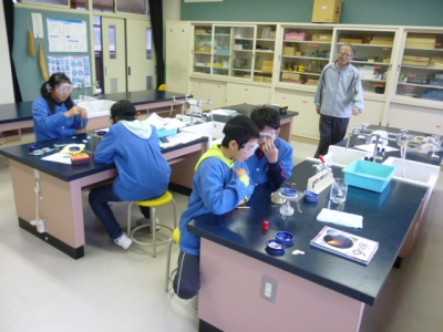 6年生の理科は,サポートティーチャーの川上先生といっしょに学習しています。