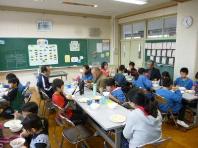 今日は秋を楽しむ会のパート2として「作って食べよう」の活動をしました。お米づくり,野菜づくりでお世話になった方々をお招きして,カレーライスととん汁を調理して会食をしました。楽しくて,おいしい,感謝の会でした。
