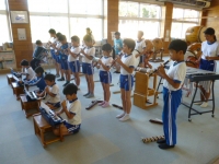 10月24日の学習発表会に向けて全校児童で合奏の練習をしました。