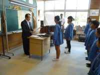 朝の会で賞状伝達を行いました。陸上競技大会で入賞した児童,入賞できなかったけれど自己ベストを更新した児童,「頑張れ」の気持ちを送っていた下級生,それぞれのよさをたたえ合いました。
