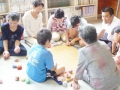 昔遊びのお手玉、おはじき、こま回し、けん玉、竹とんぼや竹うまなど、たくさんの遊びを教えていただきました。