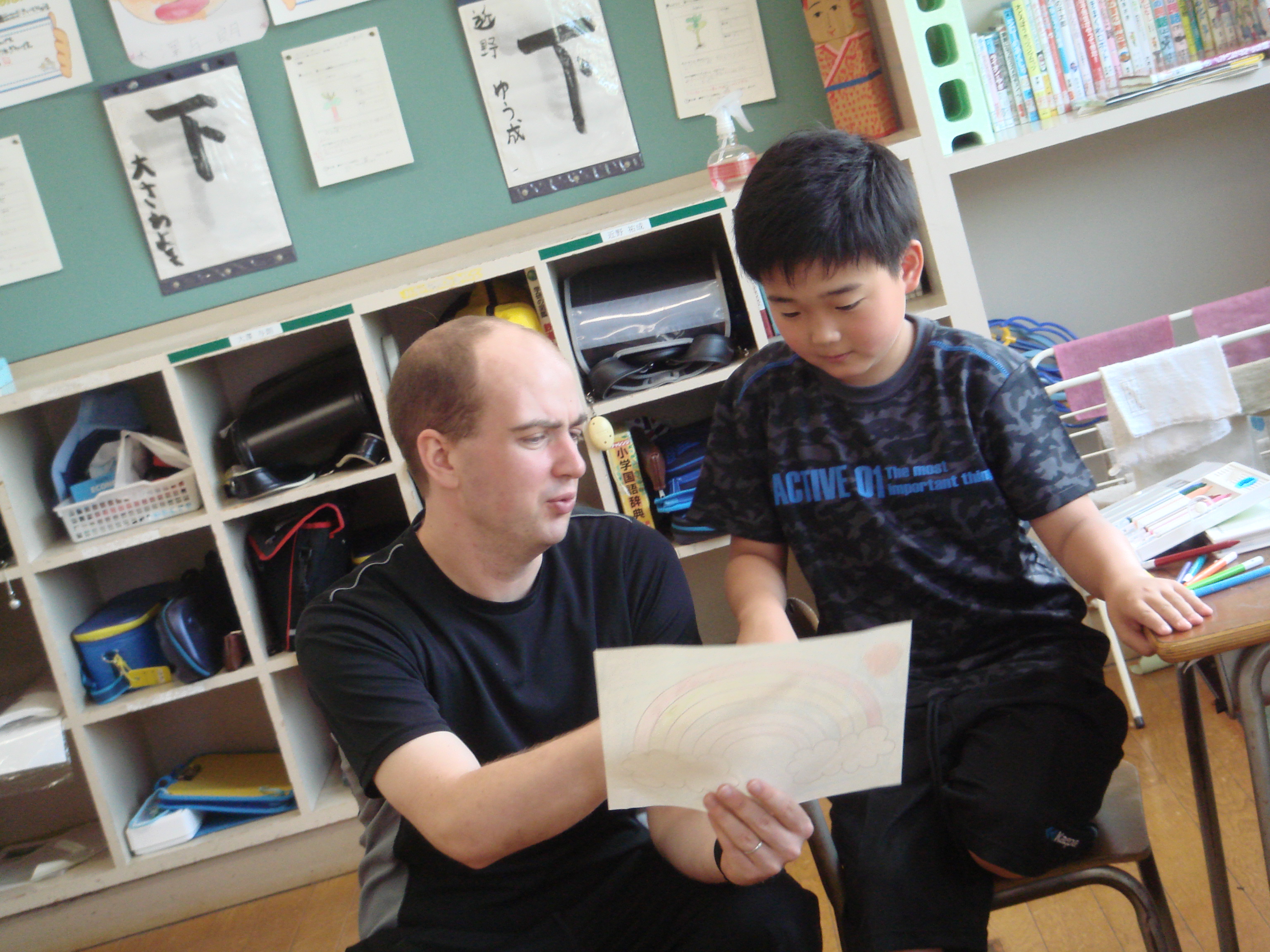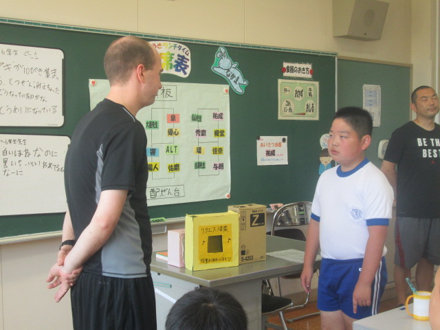 2018年7月2日 17時38分6月29日(金曜日) 去年の8月からお世話になっていたALTのウィリアム先生との最後の授業でした。ウィリアム先生はいつも楽しく英語を教えてくださいました。子どもが大好きで、子どもたちが元気に英語で答えると、いつもほめてくださいました。月に一度の授業でしたが、子どもたちはとても楽しみにしていました。給食の時間に6年生の代表がウィリアム先生にお礼のあいさつをしました。お別れは、玄関でウィリアム先生が見えなくなるまで、みんなで手を振りました。ウィリアム先生のおかげで英語が好きになった子どもたちです。ウィリアム先生、ありがとうございました。