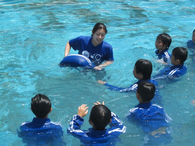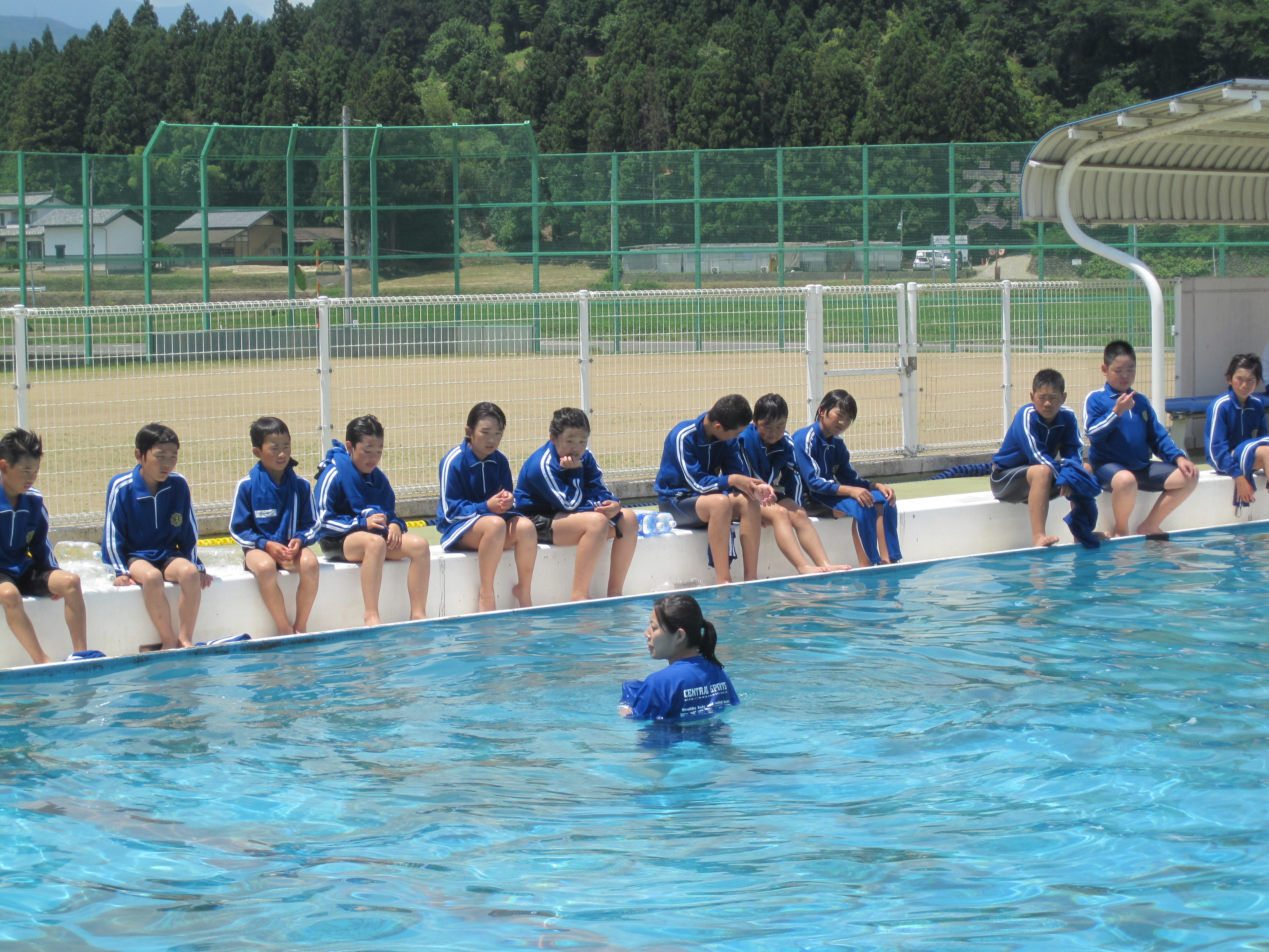 7月2日(月曜日) セントラルウェルネスクラブ福島店 渡邉恵美先生をお迎えして、着衣泳の授業が行われました。ペットボトルを使ったり、運動着を膨らませたりして、水に浮く方法を教えていただきました。くれぐれも水の事故に遭わないように約束をしました。